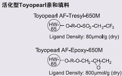 ?????? Toyopearl AF-Epoxy-650M活化型填料,也是干燥包裝,具有高密度的環氧基團(ca. 800μmol/ml)。在適當的反應條件下,可用于固定蛋白質或低分子配體。當結合高密度低分子配體時特別有效。例如,谷胱甘肽和甘氨酸的耦合密度可達到大于100μmol/ml濕狀填料。Toyopearl AF-Epoxy-650M是一種多功能的原材料,可連接其他特殊應用所需的化學活性基團。這種填料可輕松被激活為含有酰肼的物質。這對固定碳水化合物或糖蛋白特別有用。