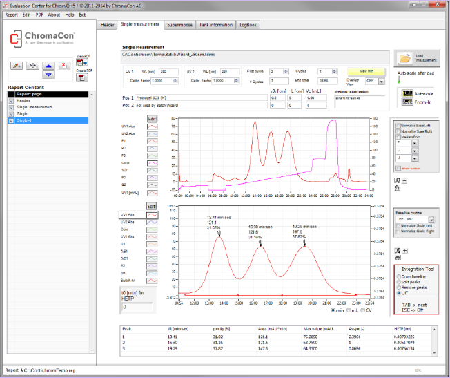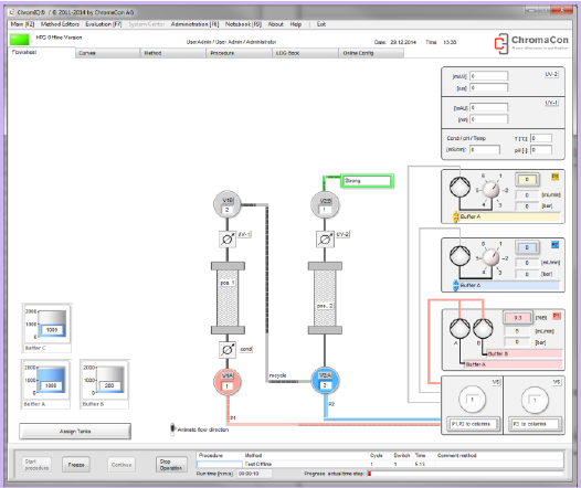 所有的Contichrom系統(tǒng)均具有完整的層析工藝運行能力,支持多種洗脫模式,ChromIQ軟件可以提供純化向?qū)Чδ埽灾С峙a(chǎn)工藝的設(shè)計和執(zhí)行。
