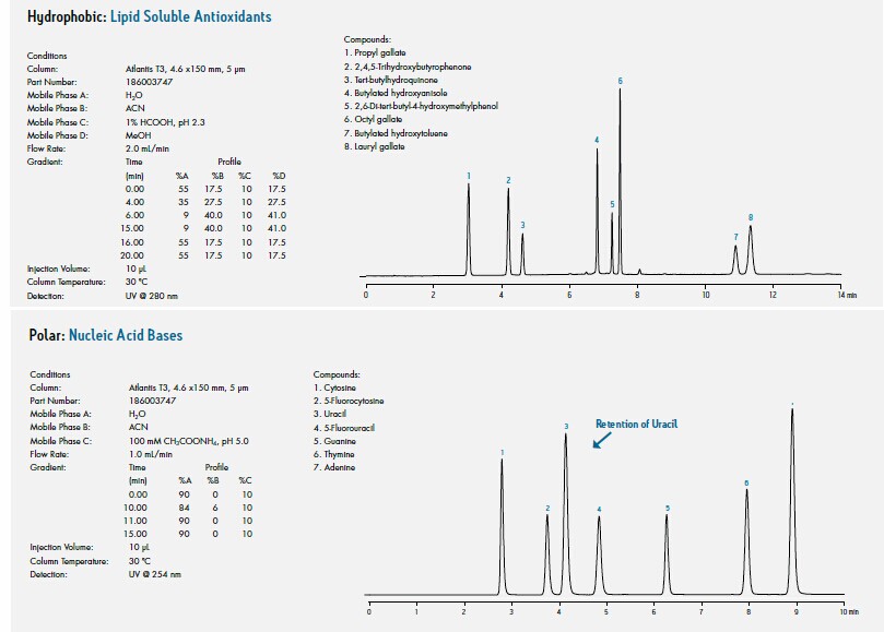 Atlantis色譜柱用以解決最具挑戰性的色譜難題之一:保留極性化合物。基于歷史經驗與合成創新,Atlantis色譜柱在為極性化合物提供優異性能、通用性、保留能力與色譜穩定性方面具有行業內領先水平。此外,它還為具有極性范圍跨度大的混合物樣品提供了具有平衡性的保留能力。Atlantis dC18是第一代的Atlantis系列色譜柱。