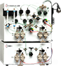 柱塞泵是目前液相色譜主流的輸液?jiǎn)卧貏e是雙柱塞往復(fù)泵。它有一個(gè)精心設(shè)計(jì)的偏心凸輪,用同步電機(jī)或變速直流電機(jī)驅(qū)動(dòng)偏心凸輪,偏心凸輪再推動(dòng)兩活塞作往復(fù)運(yùn)動(dòng)。偏心凸輪短半徑端所對(duì)應(yīng)的活塞向外伸,使該活塞的下單向閥打開(kāi)吸入流動(dòng)相,與此同時(shí),偏心凸輪的長(zhǎng)半徑端所對(duì)應(yīng)的另一活塞被推入,使其上單向閥打開(kāi),并將流動(dòng)相送至色譜柱。具有操作方便、流速穩(wěn)定、壓力脈動(dòng)小、故障率低的優(yōu)點(diǎn)。