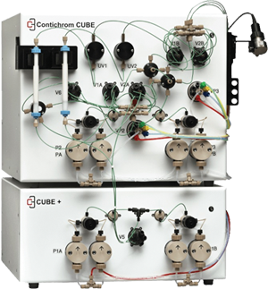 Contichrom Discovery chromatography system can realize multi-step chromatography series and improve purification efficiency. Contichrom CUBE & HPLC chromatography system can run multiple continuous flow chromatography modes: Capture SMB, MCSGP, n-rich.