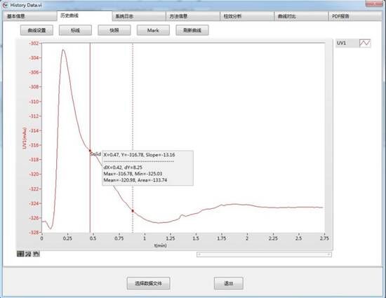 x軸進行時間/體積/柱體積查看,還可對曲線進行在線積分計算等。