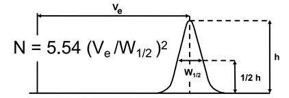 理論塔板數(N)計算公式: