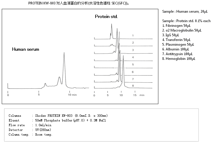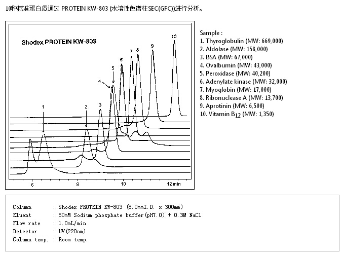 KW-803色譜柱是硅膠基質(zhì)的水溶性SEC色譜柱,適用于蛋白質(zhì)和酶的分析。