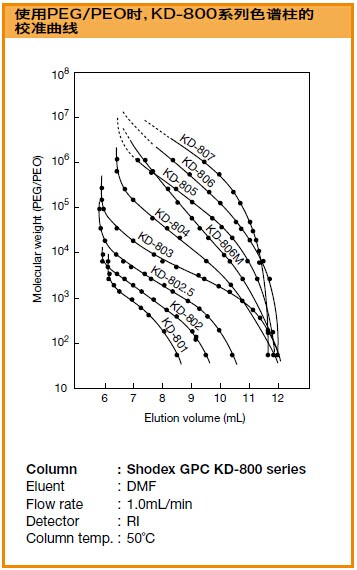 KD-800系列色譜柱的校準(zhǔn)曲線(xiàn)